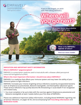 EMPAVELI is a prescription medicine used to treat adults with a disease called paroxysmal nocturnal hemoglobinuria (PNH).