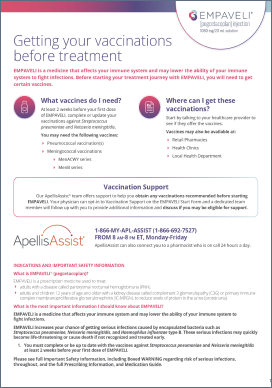 An overview of the support available for the necessary vaccinations before starting treatment with EMPAVELI.